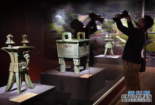 在安阳博物馆展出的展品“妇好铜钺”(10月12日摄)。目前,“凤归大邑商——殷墟妇好文物安阳故里展”正在安阳博物馆展出,共展出文物474件。 1976年被考古学家发现的妇好墓,是世界文化遗产、中国商代后期都城遗址——殷墟唯一保存完整的商代王室墓葬。新华社记者李安摄