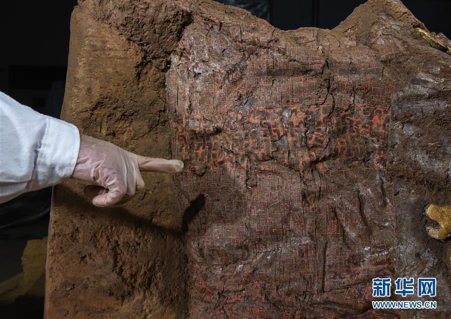 这是在位于河北行唐的考古实验室内拍摄的装饰有繁复髤漆彩绘图案的车厢遗存(12月4日摄)。新华社记者 李贺 摄 图片来源:新华网