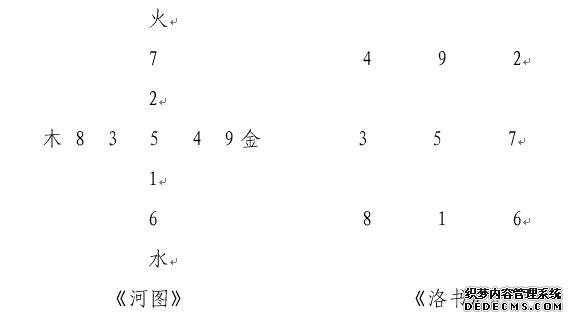 即是将十个自然数列,排成两行,何等简明扼要,自然组成“一六、二七、三八、四九、五十”。一奇一偶,一阴一阳,一天一地,五个不同的数列。并分别作出:“共宗、同道、为朋、为友、同途”等五种含义。而有“阖闢奇偶,五兆生成,流行终始”的种种作用。“阖”者“合”也,即一与六合,二与七合,三与八合,四与九合,五与十合。组成“河图”之式。即阴阳得配,雌雄相交,一生一成,构成五兆,而有水火木金土,春夏秋冬,日往月来,运行不已之象。《尚书·洪范》曰:“一五行,一曰水,二曰火,三曰木,四曰金,五曰土。水曰润下,火曰上炎,木曰曲直,金曰从革,土曰爰稼穑。润下作咸,炎上作苦,曲直作酸,从革作辛,稼穑作甘。”即是一六合水,二七合火,三八合木,四九合金,五十合土的“河图”五行系列。但《洪范》所言,仅只有一二三四五等五个生数,未讲六七八九十五个成数。将“河图”展开,即是“洛书”。“河图”、“洛书”确是风水术之正宗。实际将天地数阖之成为“河图”,闢之即成为“洛书”。自成体系,妙用无穷。
