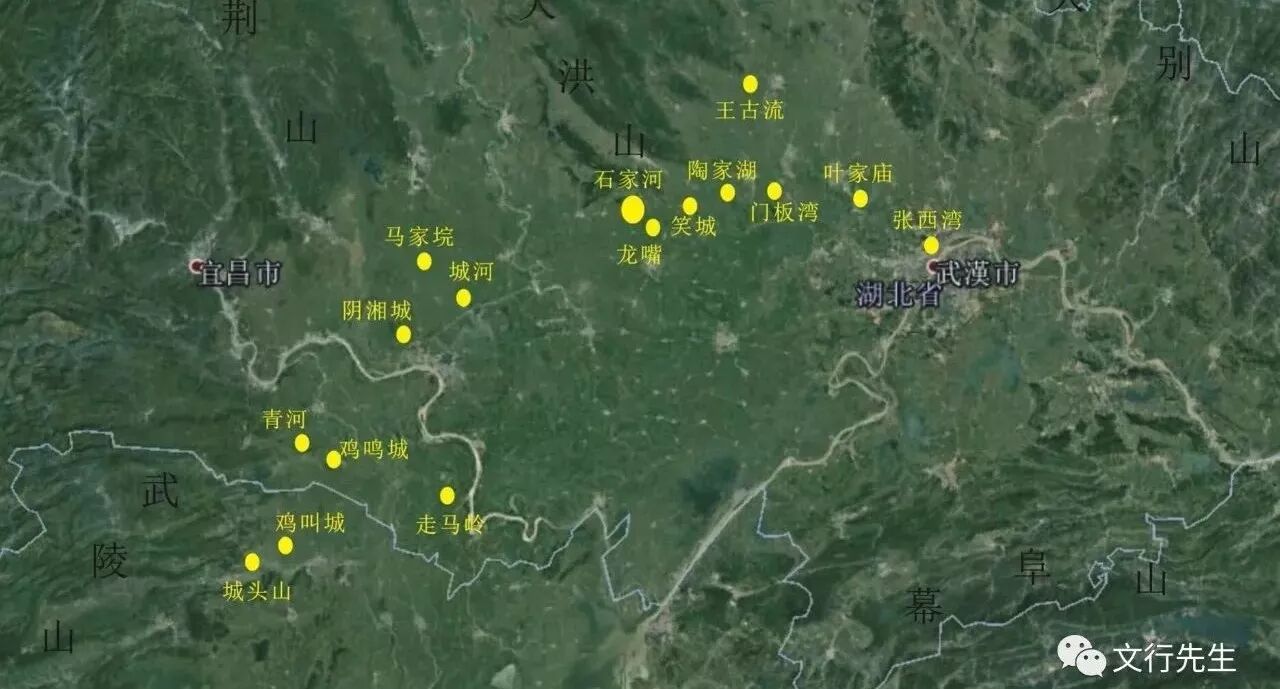 7.石家河古城是江汉平原古城群中面积最大,文化内涵最丰富的,发现有精美玉器、神人头像、持钺羽冠武士图像等。石家河古城是石家河文化时期江汉平原的区域中心。石家河古城于2200BC人口锐减、发展迟滞,但涌现大量陶塑,玉器生产水平高超。石家河文化是三星堆文化的主要源头之一。