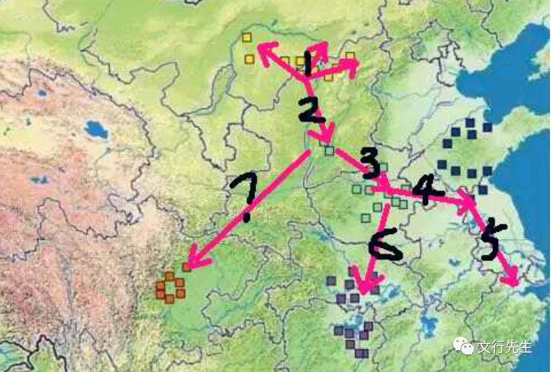正因为五帝来自中原的西北部,并向东南方向进攻,所以,在现在看到的文献里,颛顼、尧、舜、禹经常出现在东方的山东、南方的两湖、淮河的涂山、东南的浙江、甚至西南的四川,但并不能由此说明他们分别为山东人、两湖人、安徽人、浙江人、四川人,而只能说明那里还有反叛势力。