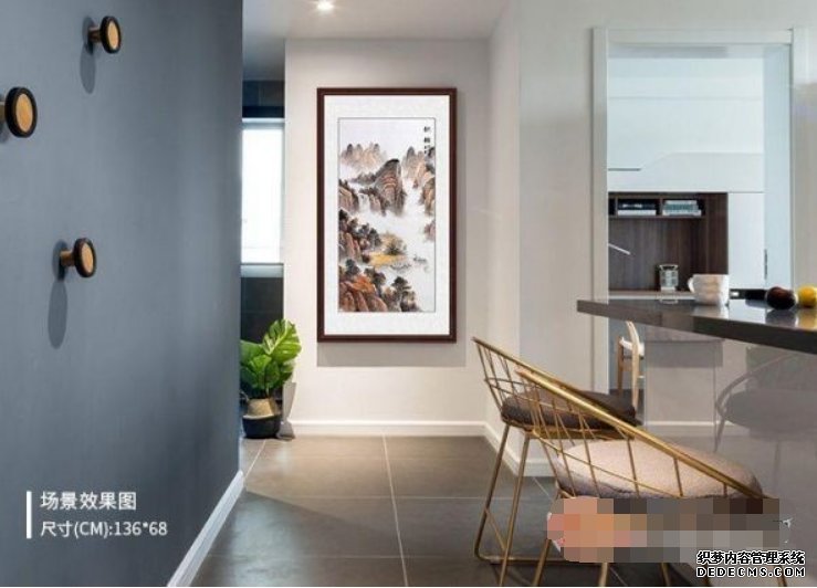 家里餐厅里挂山水国画作为装饰,将自然山水景色之美带入家里,让我们一日三餐都能够欣赏到自然景色的韵味雅致,是家居装饰经典的选择!
