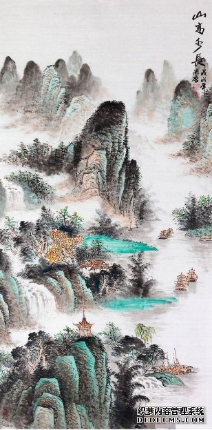 四尺竖幅山水国画,画中山峰众多姿态却各不相同,千峰竞秀层峦耸翠各有特点,山体青绿山顶焦黑,既有青绿的生机勃勃又有厚重之感,山峰四周有各种色彩的树木植被,展现生机旺盛,而山间多段的瀑布顺流而下展现了动态景色之美!