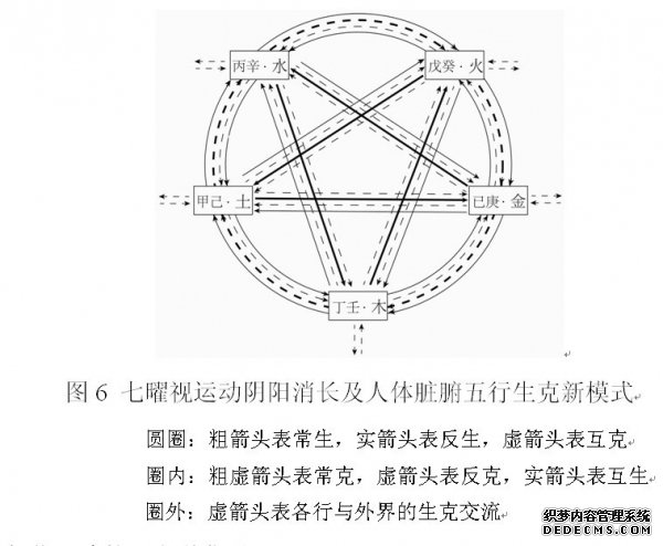 6 指出传统五行生克模式的局限性,依七曜阴阳及天人合一,建立了五行生克新模式,行间存在10对互生、10对互克关系。