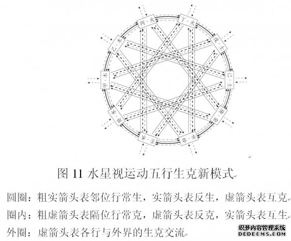 医易学界称之为天干天五行的背后玄机一直是千古之谜。笔者等在文献[15]中讨论了水星的周10年视运动轨迹,如图10所示;其阴阳周10年周期性消长五行生克新模式如图11所示[35] 。它说明天干天五行的天文学背景是水星周10年视运动。