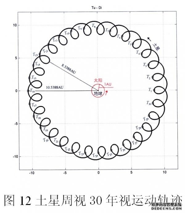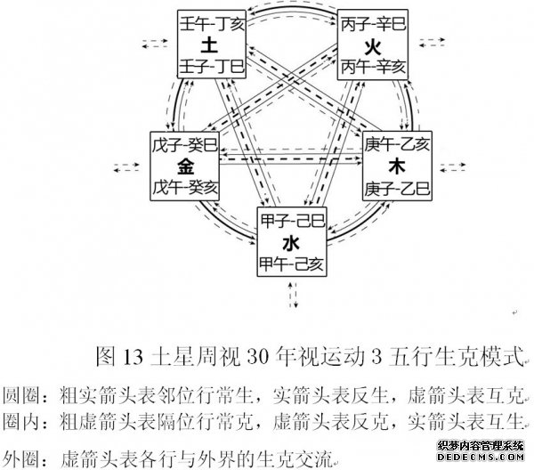 笔者等在文献[13]中讨论了土星的周30年视运动轨迹如图12所示;其阴阳周30年周期性消长五行生克模式图13所示[35] 。